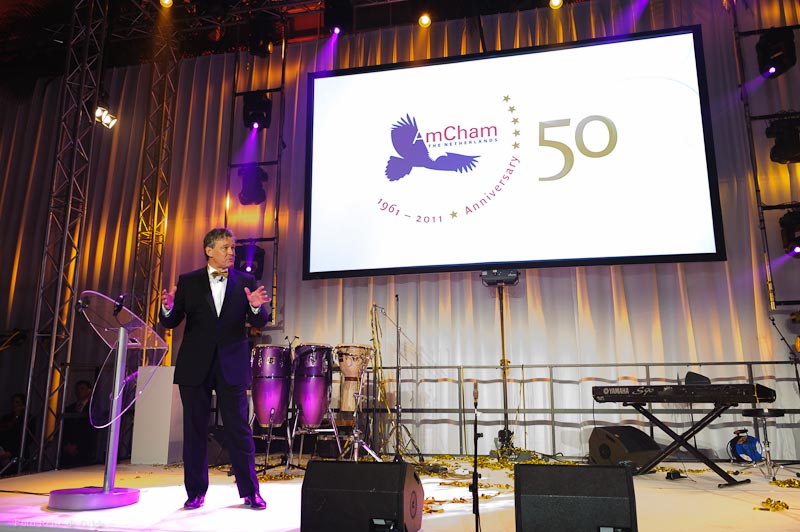 Koningin Máxima en oud minister-president Rutte bij jubileumgala 50 jaar Amerikaanse Kamer van Koophandel in Nederland